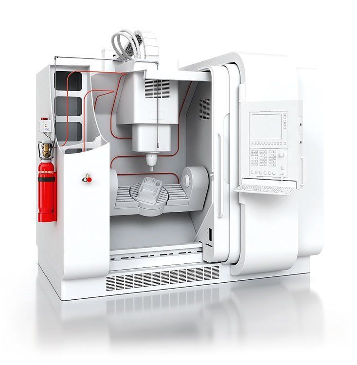 Riduce anche i rischi di incendio più critici: • Residui di olio in fiamme o metallo lavorato a causa di • Malfunzionamento del sistema di raffreddamento • Utensile rotto o scarsa manutenzione . • Riparazione intensiva della macchina • Ordini ritardati dovuti ai tempi di fermo • Pulizia intensiva se si attiva il sistema di spegnimento automatico. Installazione rapida e semplice direttamente all'interno delle macchine CNC: il tubo flessibile del sensore può essere facilmente installato sulle pareti o sul tetto del telaio della macchina. Durante l'uso, il tubo viene pressurizzato con azoto secco a 16 bar. La dinamica di pressurizzazione rende il tubo ancora più reattivo al calore. Rilevazione anticipata del fuoco: in caso di incendio, il calore del fuoco fa scoppiare il tubo di rivelazione nel punto più caldo (circa 110 ° C). Estinzione immediata: l'improvvisa depressurizzazione del tubo attiva la valvola di pressione differenziale e allaga immediatamente l'armadio con un agente estinguente CO2. L'incendio si spegne solo pochi secondi dopo l'avvio, riducendo al minimo i danni e i tempi di fermo.